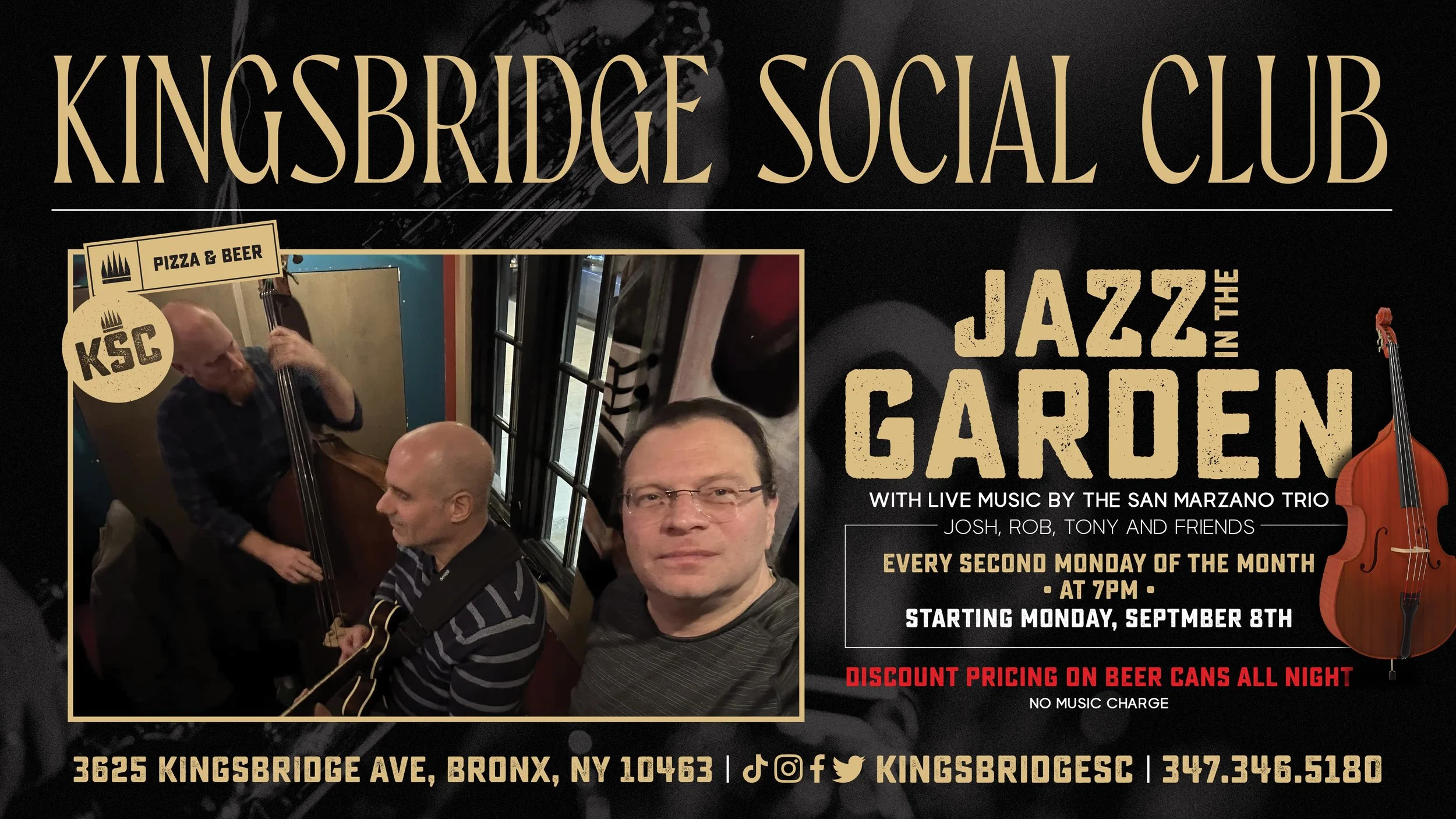 Experience live jazz in the heart of the Bronx with The San Marzano Trio — Josh, Rob, Tony & Friends.