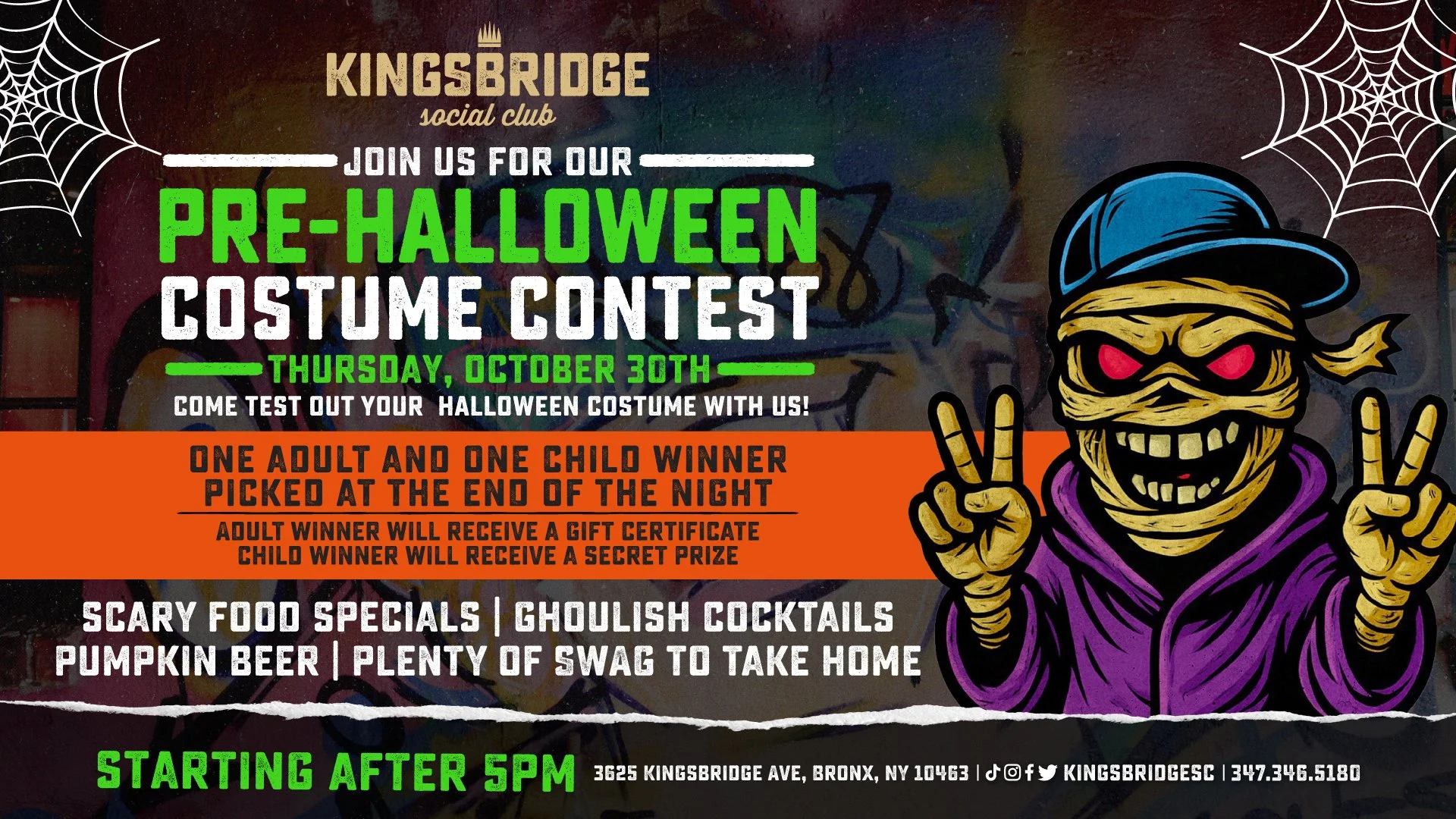 Kick off Halloween weekend at Kingsbridge’s Pre-Halloween Costume Contest. Prizes will be awarded for the best adult and child costumes.